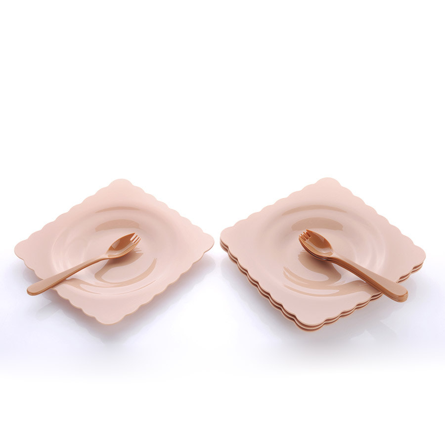 得力熊歐式大號花邊正方餐盤(4pcs)( 配4pcs叉匙)