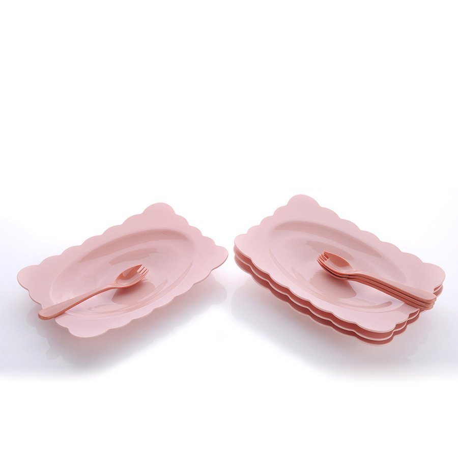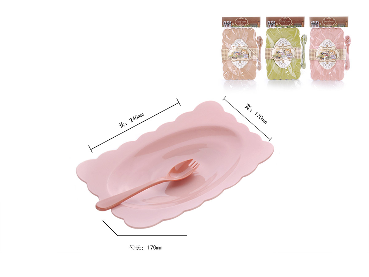 得力熊歐式大號(hào)花邊長(zhǎng)方餐盤(4pcs)( 配4pcs叉匙)