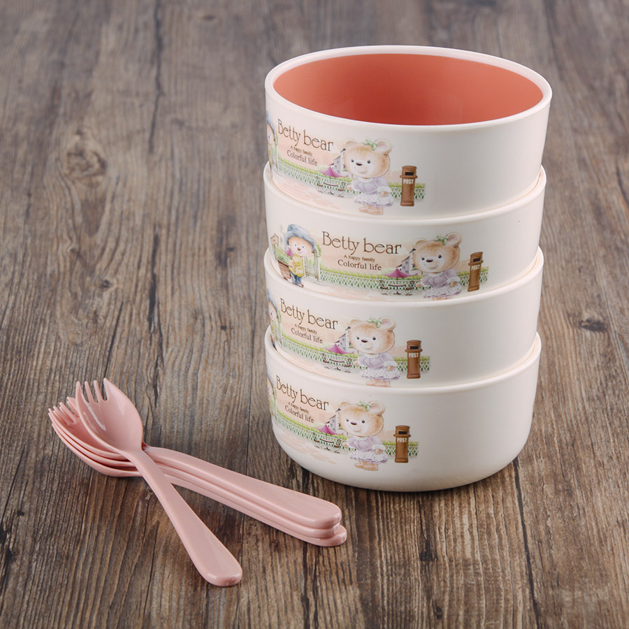 得力熊小號(hào)韓式雙色餐碗(4PCS)