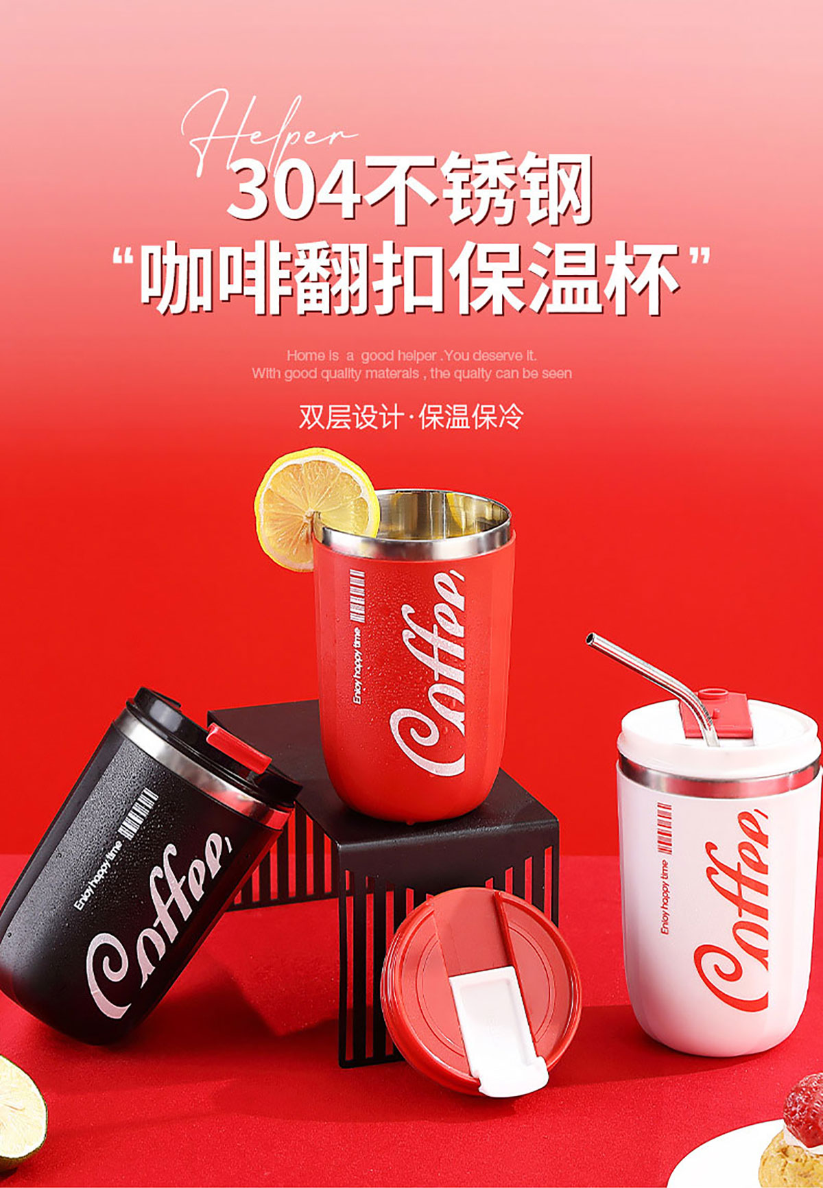 500ml咖啡304不銹鋼翻扣保溫杯
