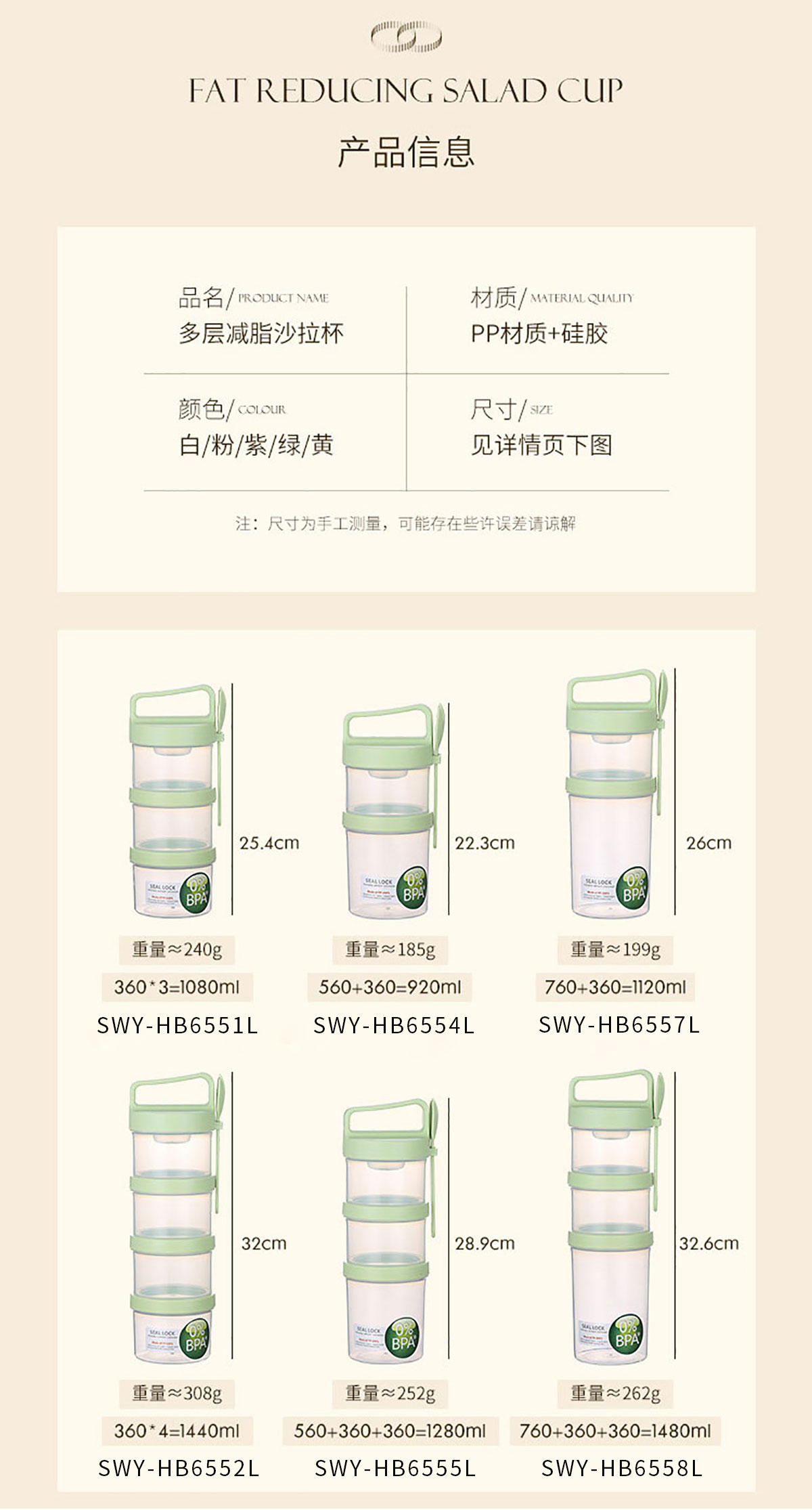 多層沙拉杯920ml/1080ml/1120ml/1280ml/1440ml/1480ml