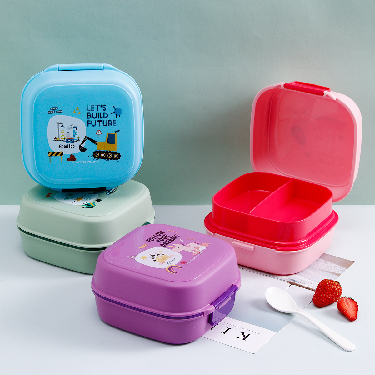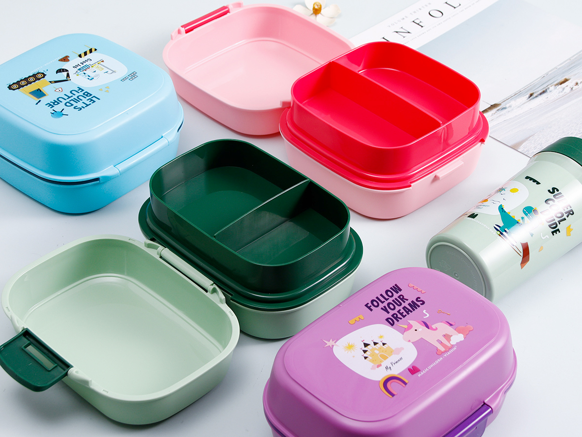 童彩翻蓋便當盒+運動水壺套裝(長方形/正方形1000ml+水杯350ml)