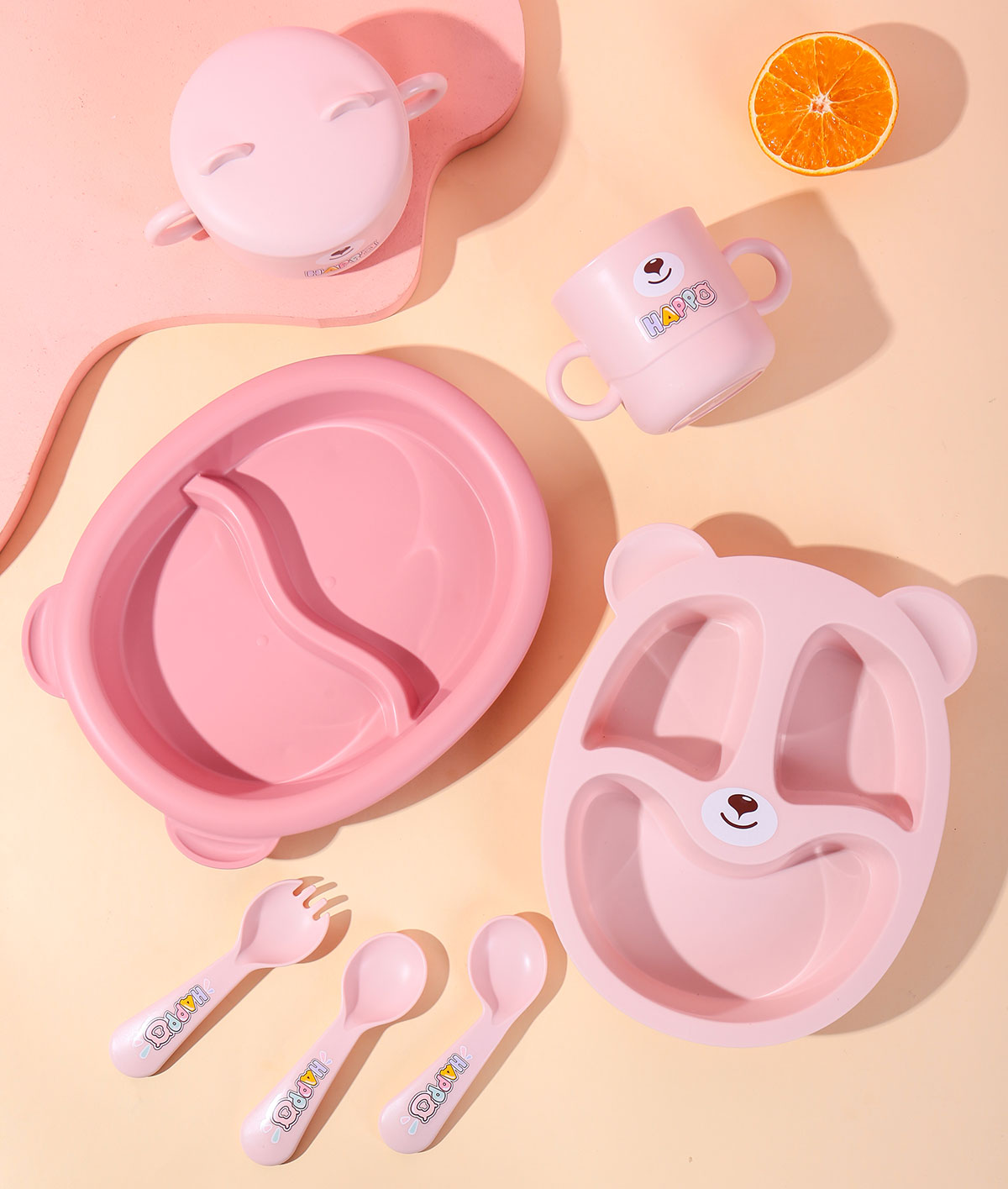 HH-XJ8330:餐盤245*200*45mm/碗160*110*80mm/杯140*80*83mm/勺叉125mm