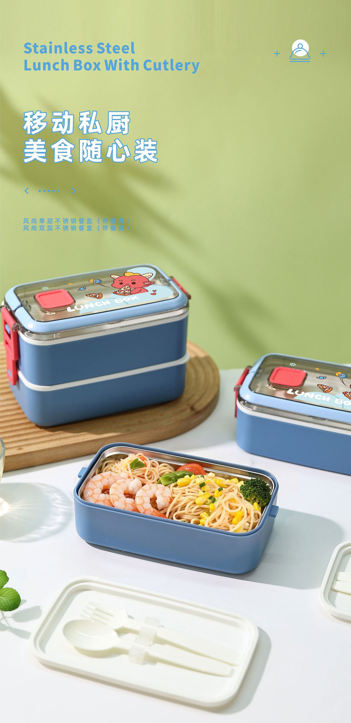風(fēng)尚單層/雙層不銹鋼餐盒(帶餐具)