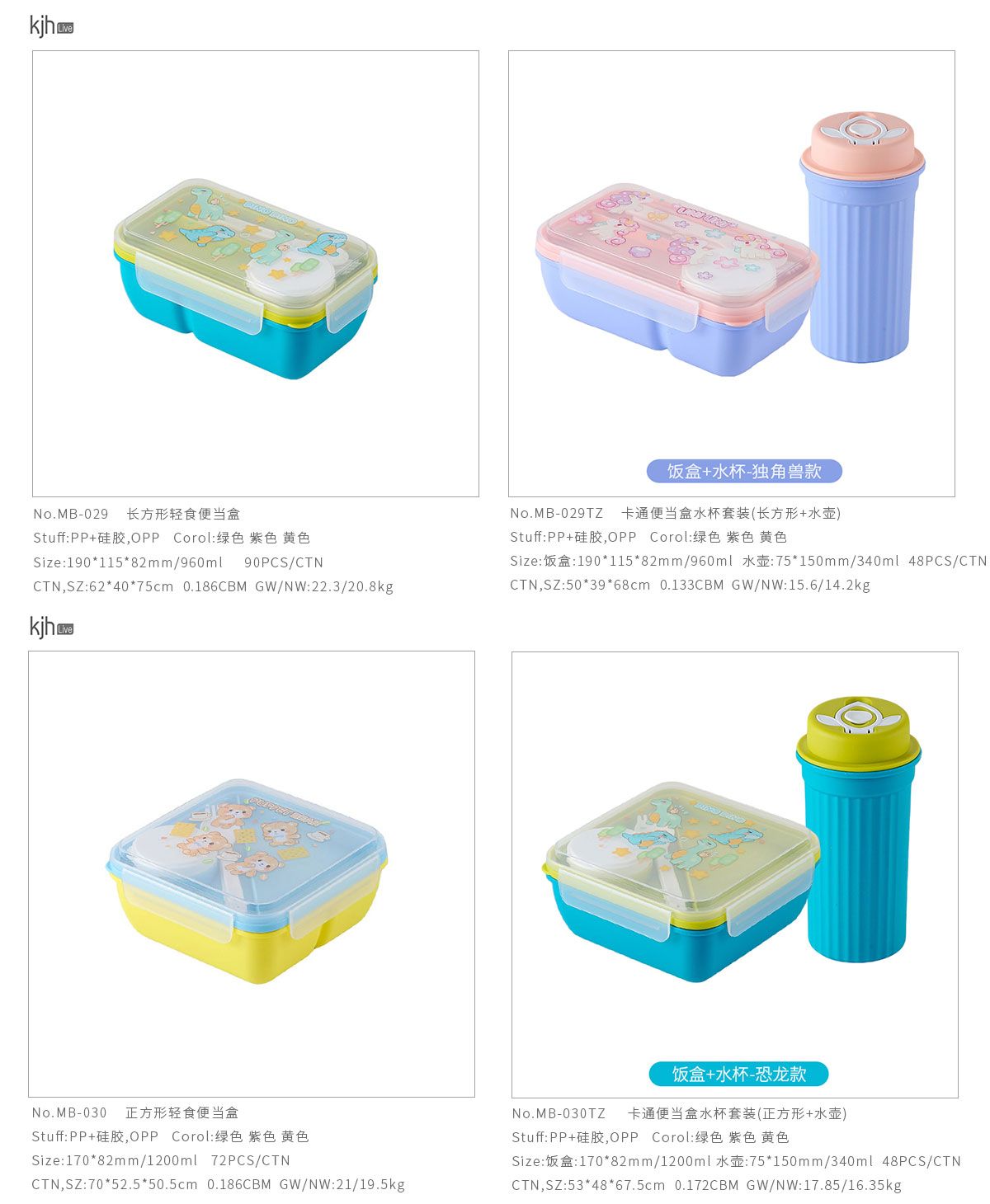 MB-029TZ(長方形套裝):飯盒:190*115*82mm/960ml 水壺:75*150mm/340ml
