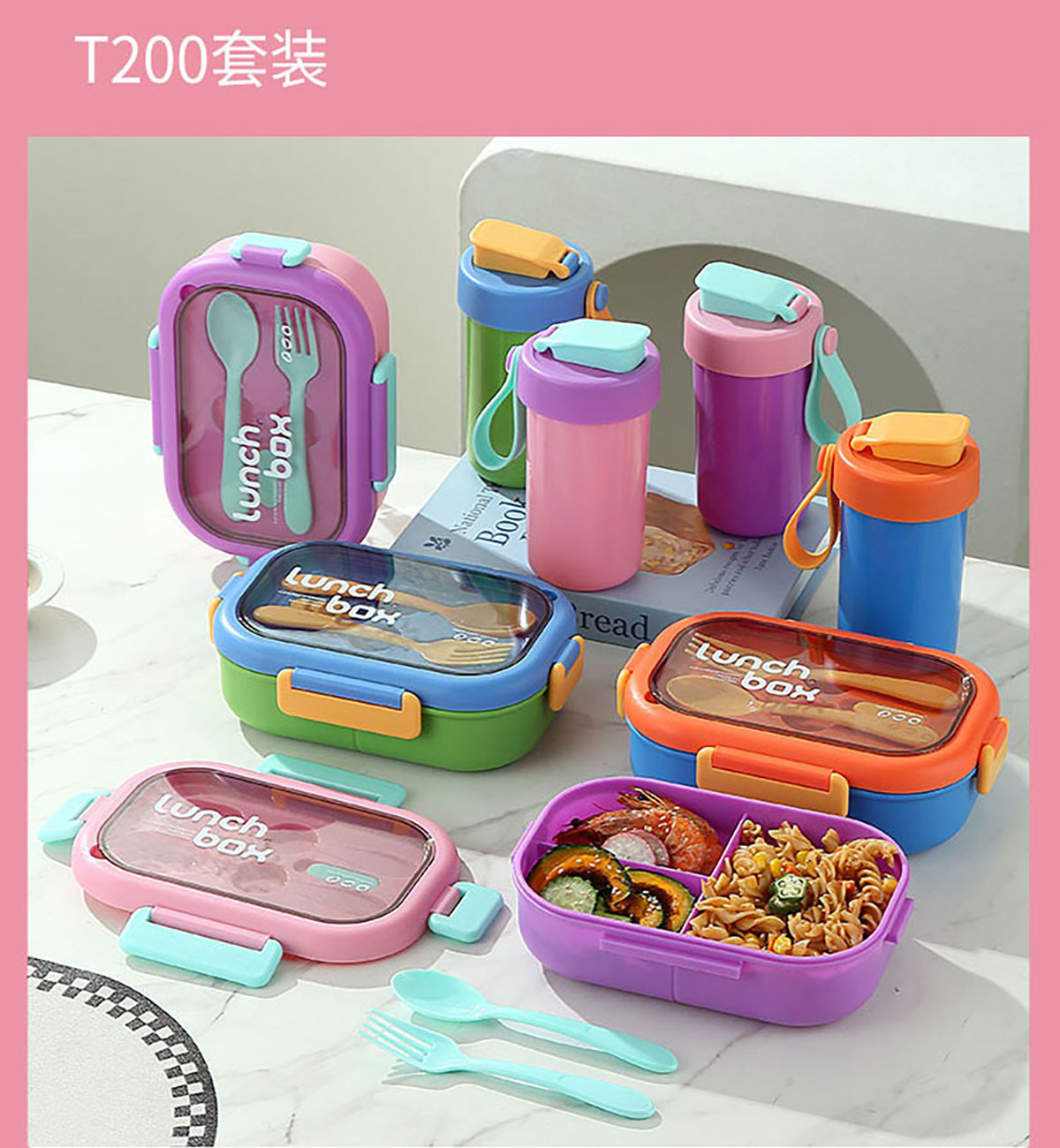 SWY-T200(水杯套裝):飯盒:215*149*68mm/1000ml 水壺:直徑82*161mm/480ml