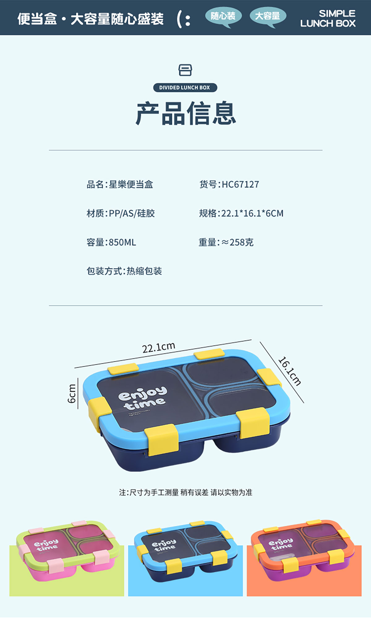 Size: 221*161*58mm/850ml